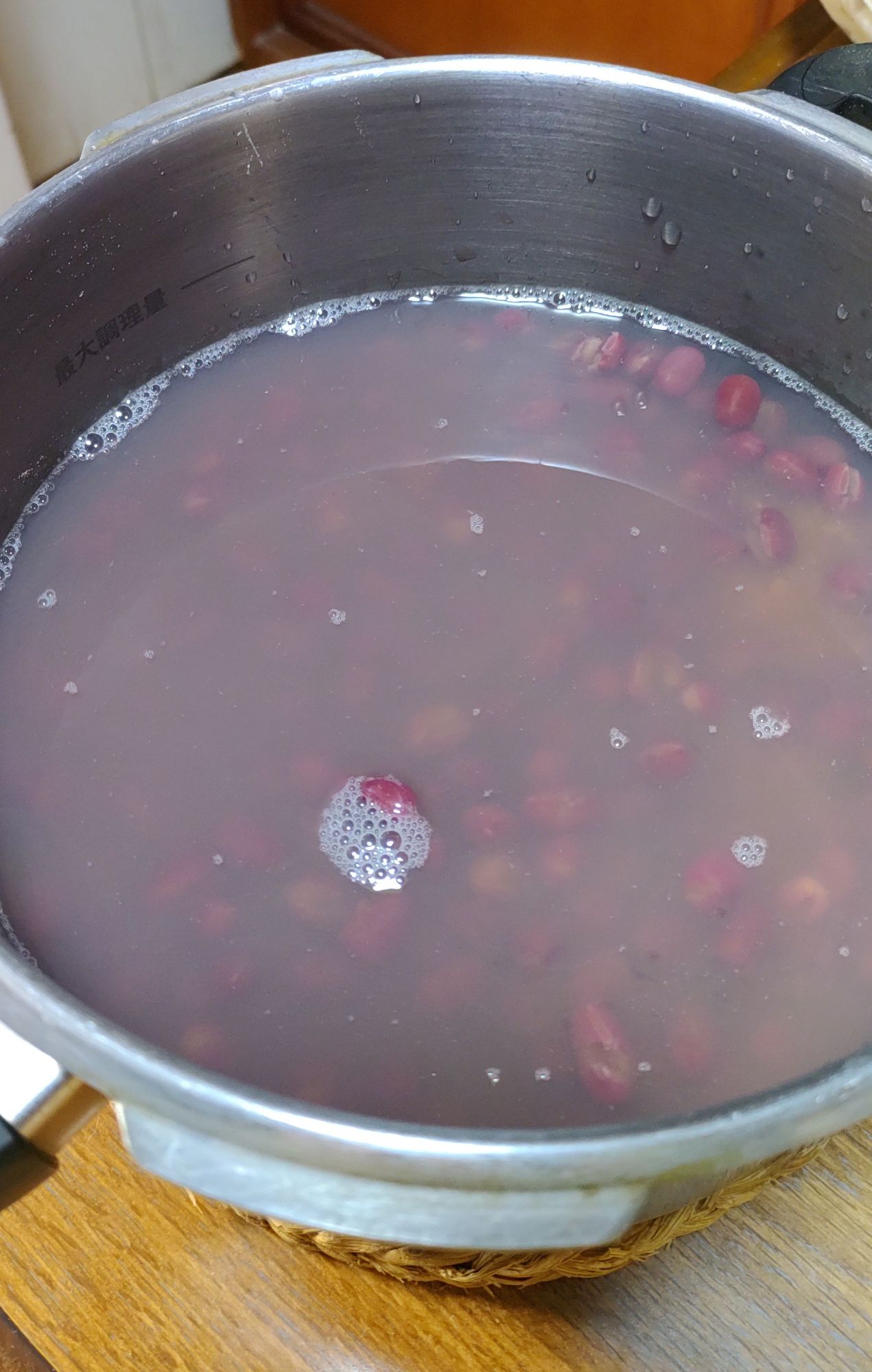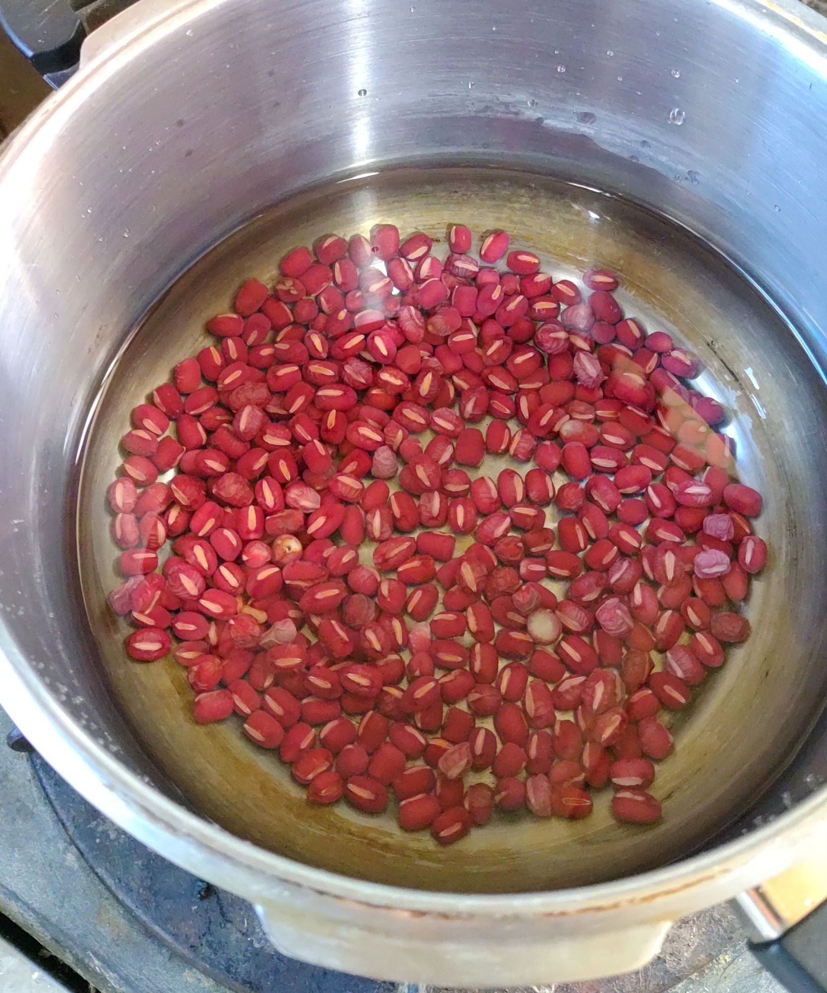 圧力鍋へ投入。多めの水を入れます。