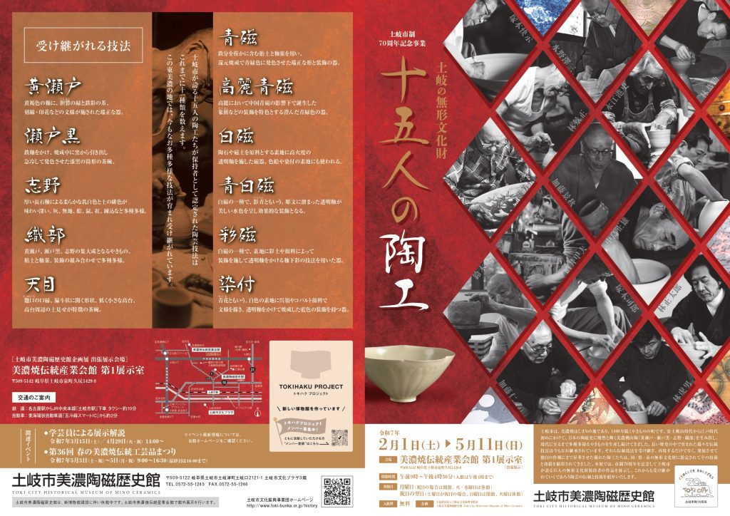 この企画展は、土岐市の無形文化財に指定されている15人の陶工の作品や技術を紹介するものです。土岐市は美濃焼の主要な産地の一つであり、長い歴史と伝統を持つ陶磁器の生産地として知られています。