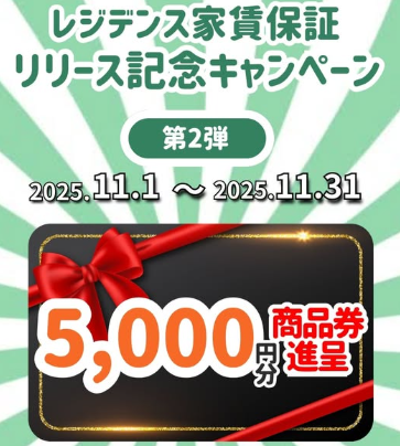 『入居者さま必見』第2弾レジデンス家賃保証リリース記念キャンペーン【かんりす】