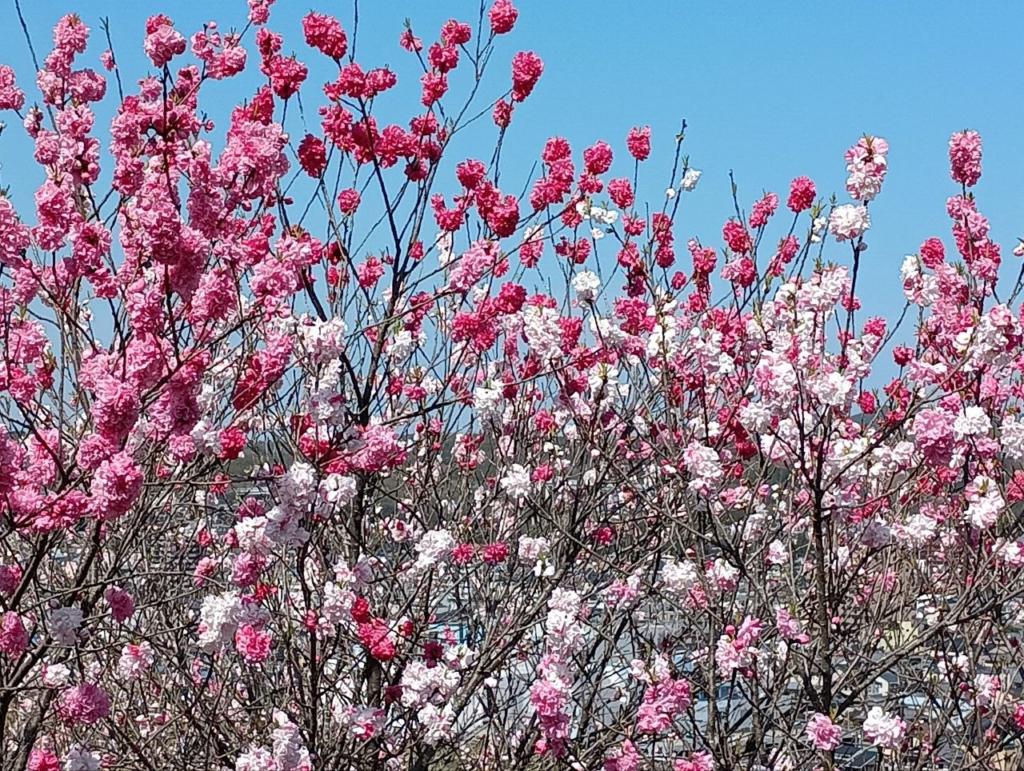 どうですか。薄いピンクと濃いピンクが混在し、青空にくっきり浮かび上がりとても美しいではありませんか。