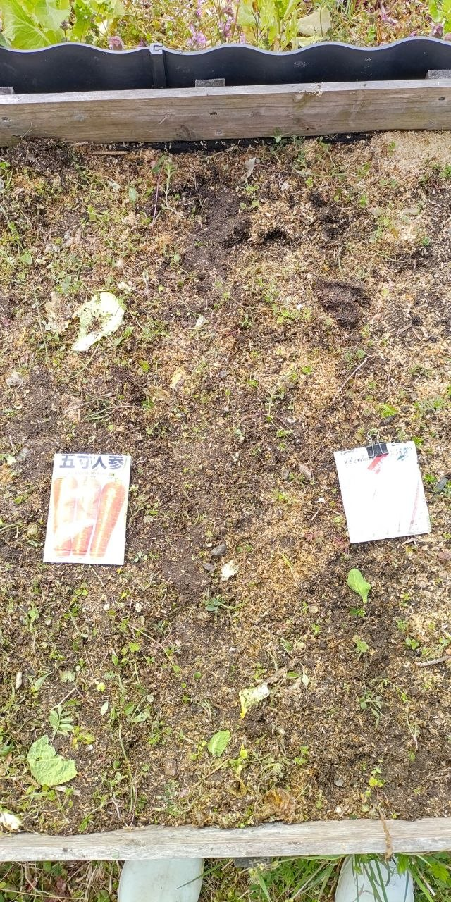 人参と大根をまた播種しました。第一弾がまだ発芽せずこれまた心配です。