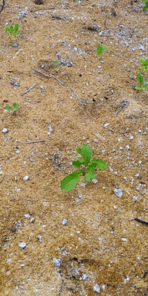 まだ暑いので乾燥防止のためもみ殻を撒いています。雨も少ないので困りますね。