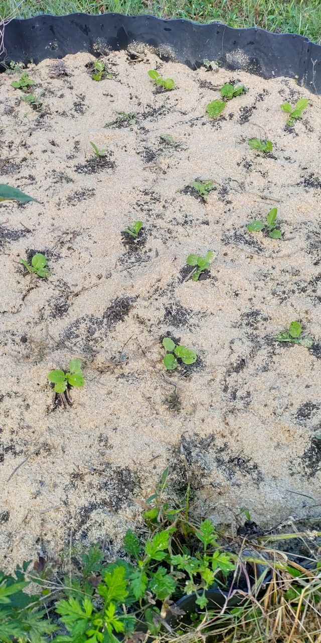 まだ暑いので乾燥防止のためもみ殻を撒いています。雨も少ないので困りますね。
