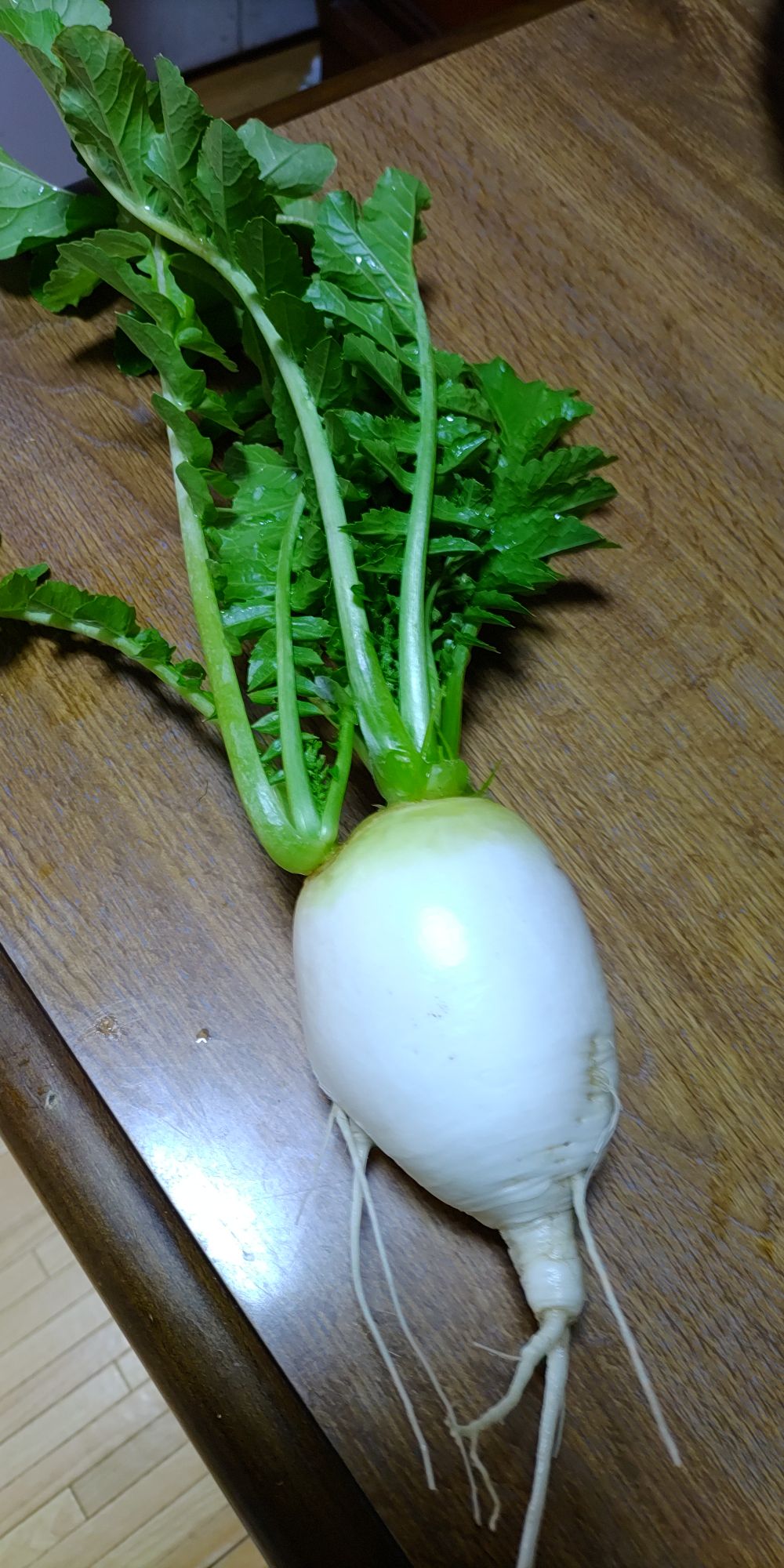 2カ所から葉が生えた大根発見。なぜでしょう。