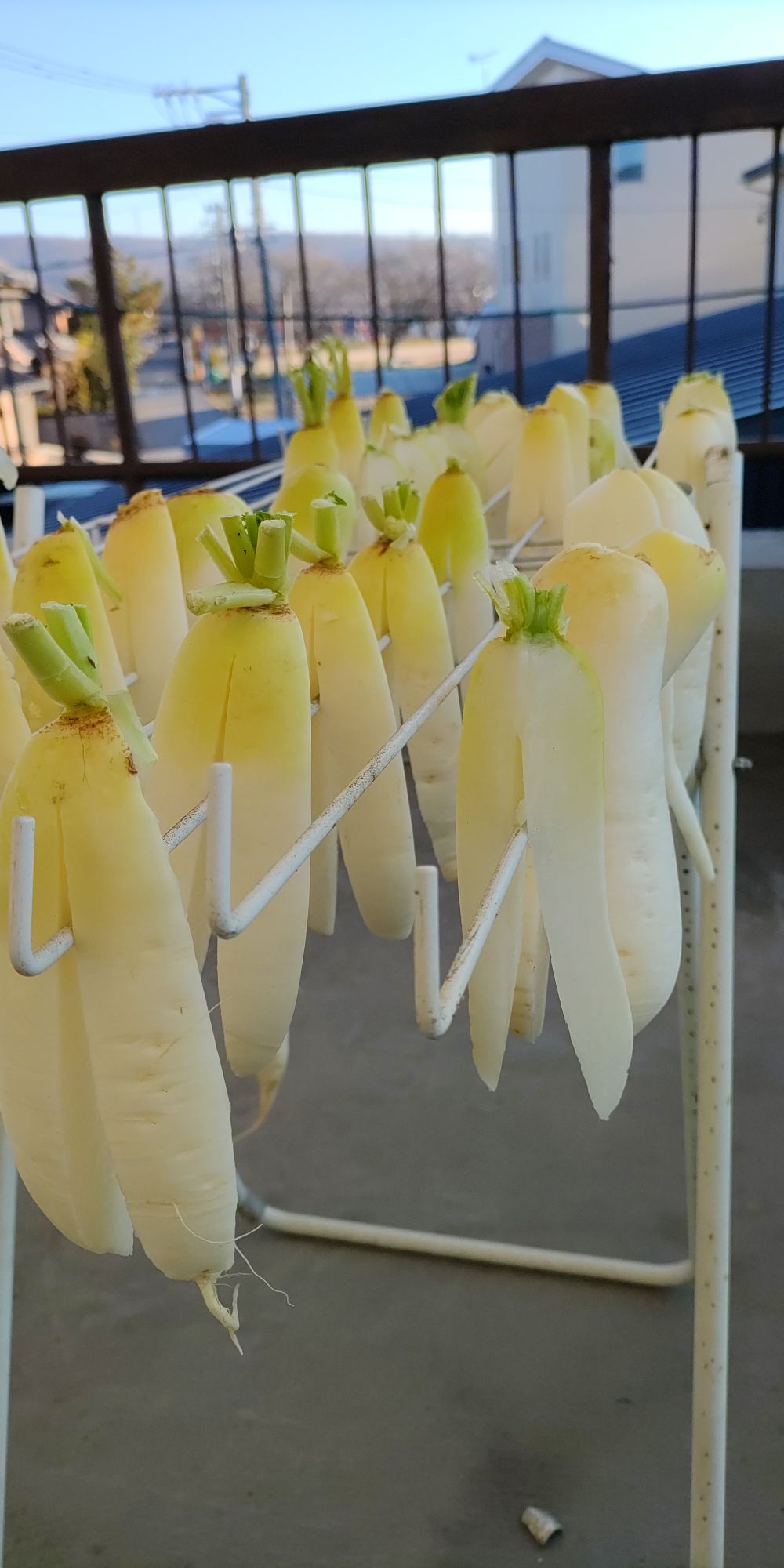 タオル干しに引っ掛けて天日干し