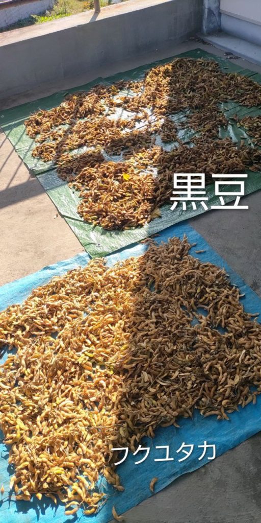 大豆は軒下で乾燥中ですがそろそろ少しづつ鞘出し作業開始です。
