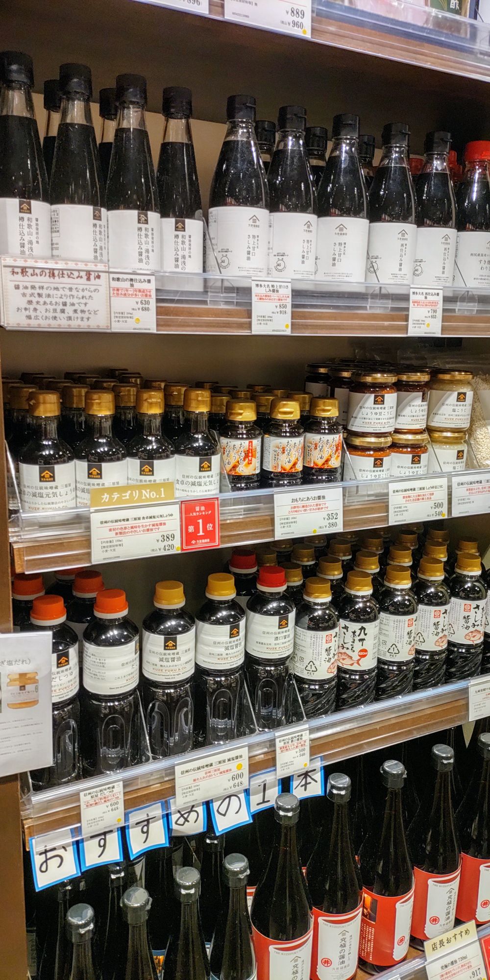 お醤油も品ぞろえ豊富です。ただ地元の商品がありません。マイナスポイントです。