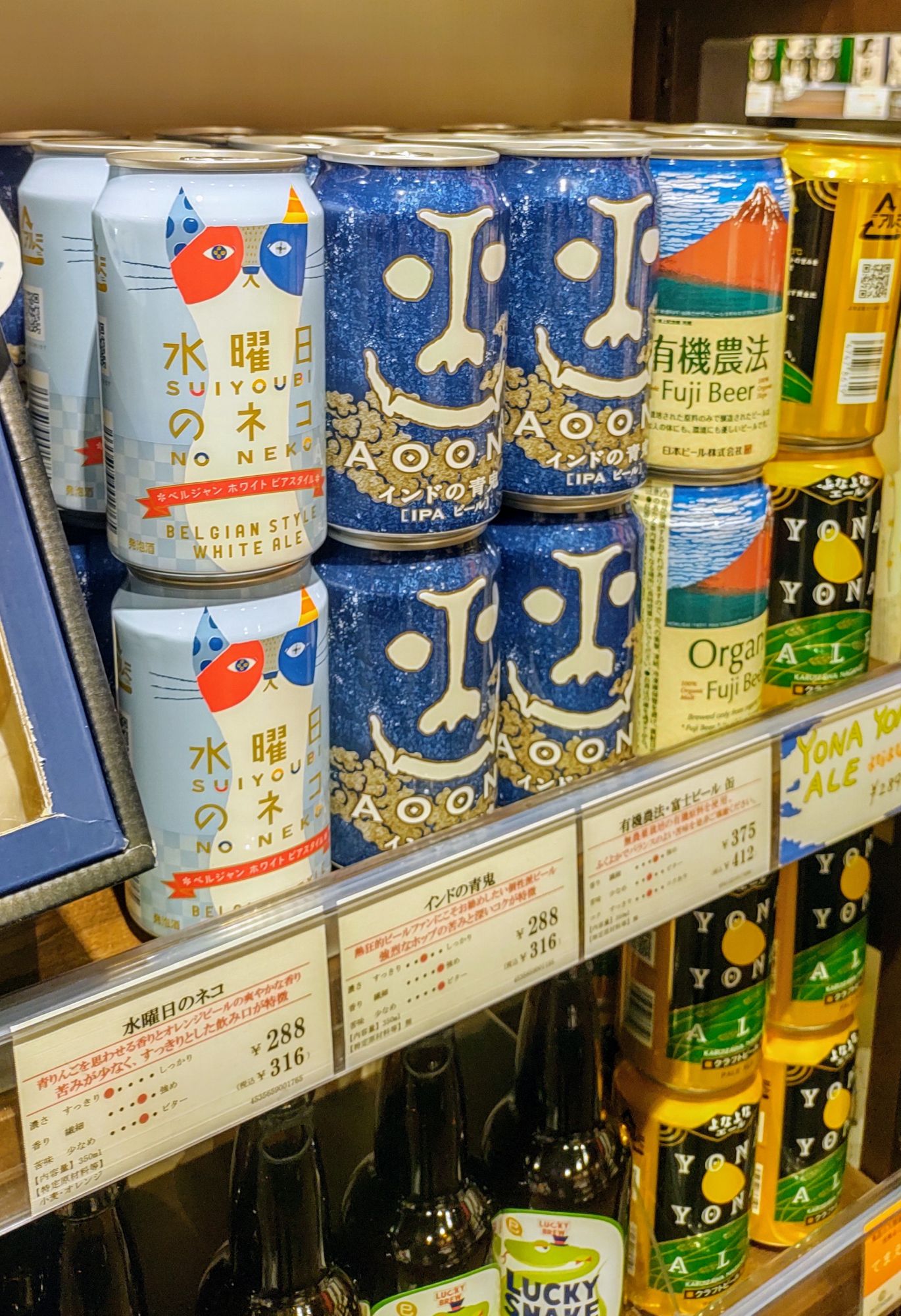 お酒の品ぞろえもすごいです。味はわかりませんが可愛いデザインで目を引きますね。