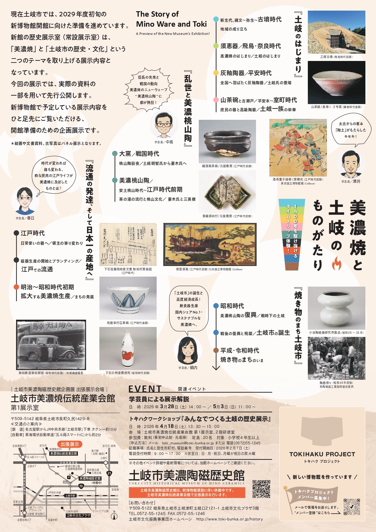 2026年2月7日(土)から6月7日(日)まで、土岐市美濃焼伝統産業会館 第1展示室で特別展「美濃焼と土岐のものがたり-新博物館の展示を先取り!-」が開催されます。
