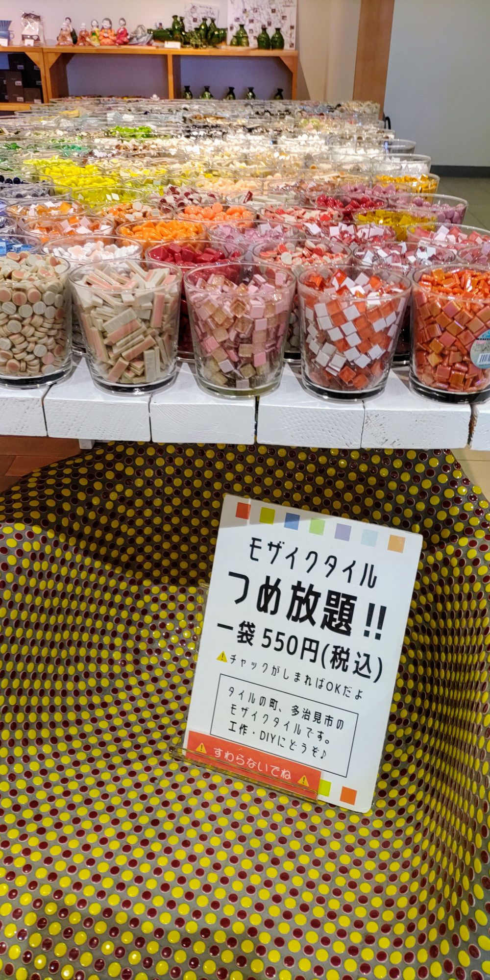ちいさなモザイクタイルの詰め放題もありました。デコレーションに使えます。