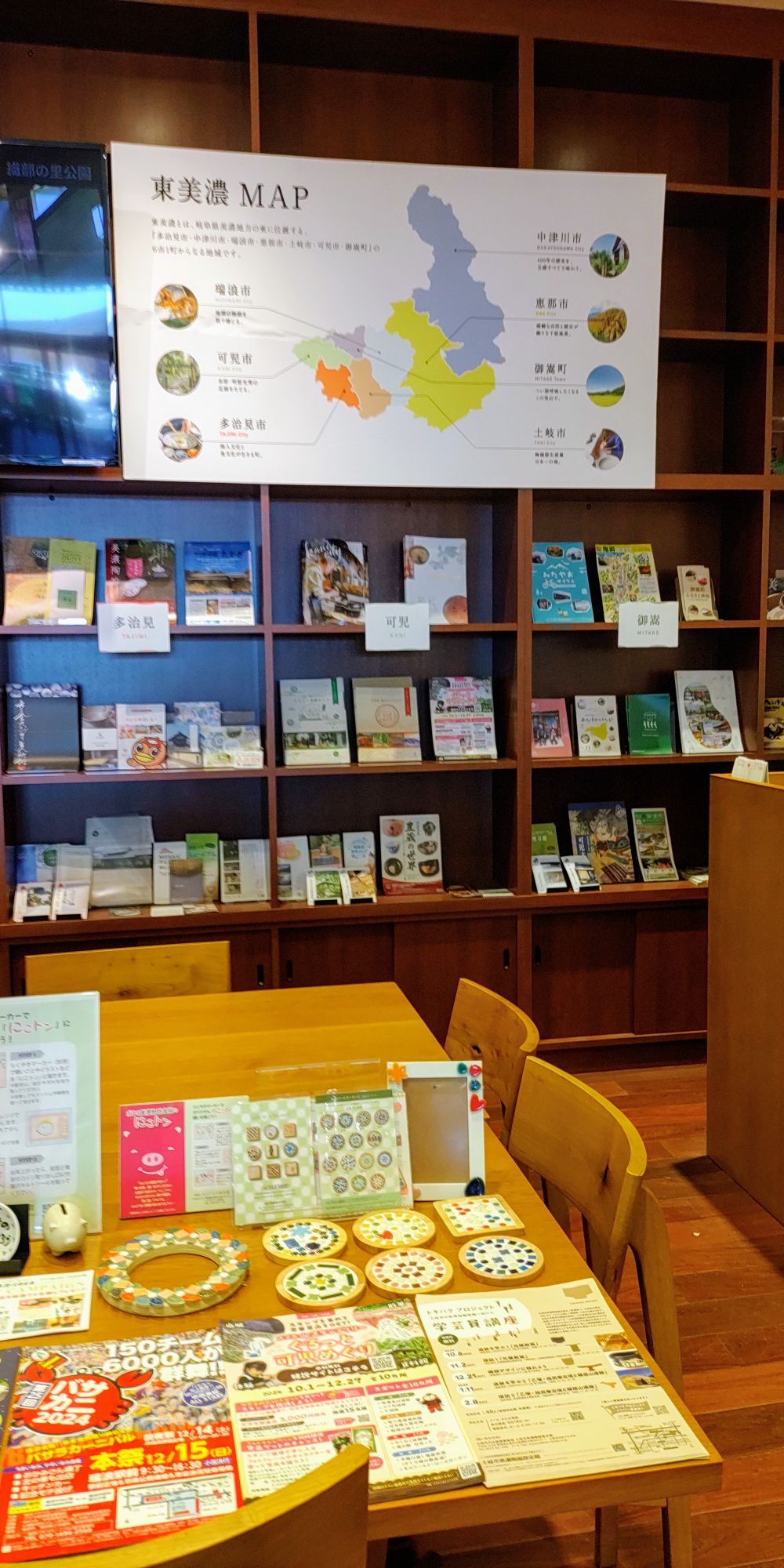 ここでは、奥美濃地域の特産物の販売や観光名所の案内がされています。