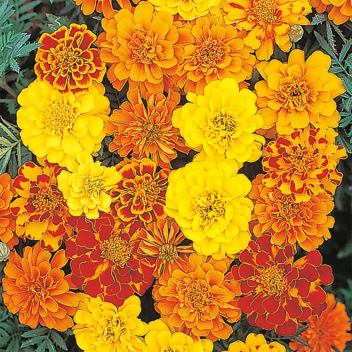 フレンチマリーゴールドは、草丈が20~30cmほどのコンパクトな品種です[3]。一重咲き、八重咲き、クレスト咲きなど、様々な咲き方があります。花色も黄、オレンジ、赤、複色など多様で、5月~7月と9月~11月に開花します[3]。