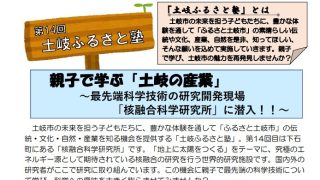 土岐市 親子で学ぶ「土岐の産業」~最先端科学技術の研究開発現場「核融合科学研究所」に潜入!!~ 土岐市の未来を担う子どもたちに、豊かな体験を通して「ふるさと土岐市」の伝統・文化・自然・産業を知る機会を提供する「土岐ふるさと塾」。第14回目は下石町にある「核融合科学研究所」です。「地上に太陽をつくる」をテーマに、究極のエネルギー源として期待されている核融合の研究を行う世界的研究施設です 2025.05.23 土岐市